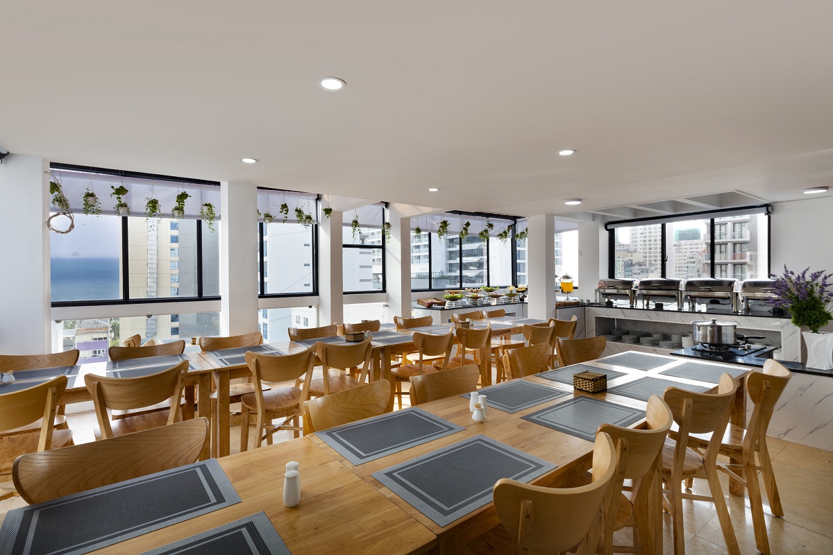 Nằm tại vị trí tầng 10 của khách sạn, nhà hàng Carina phục vụ điểm tâm sáng Buffet cho quý khách từ 6 giờ 30 đến 9h30 .